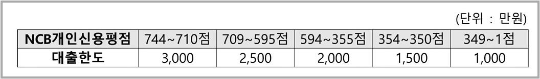 2. 대출 신청일을 기준으로 자신의 신용평점이 744점 이하인 경우 (법인은 (공동)대표이사중 1인의 NCB(나이스) 개인 신용평점 기준)