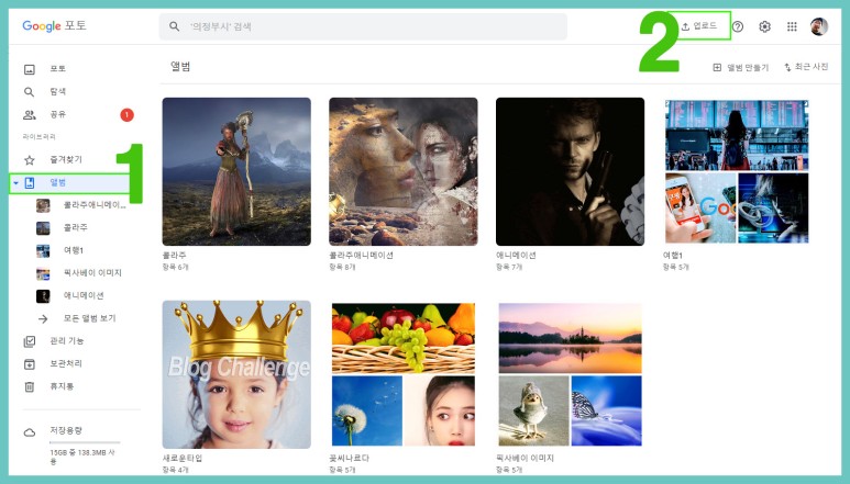 앨범 선택→ 업로드 →