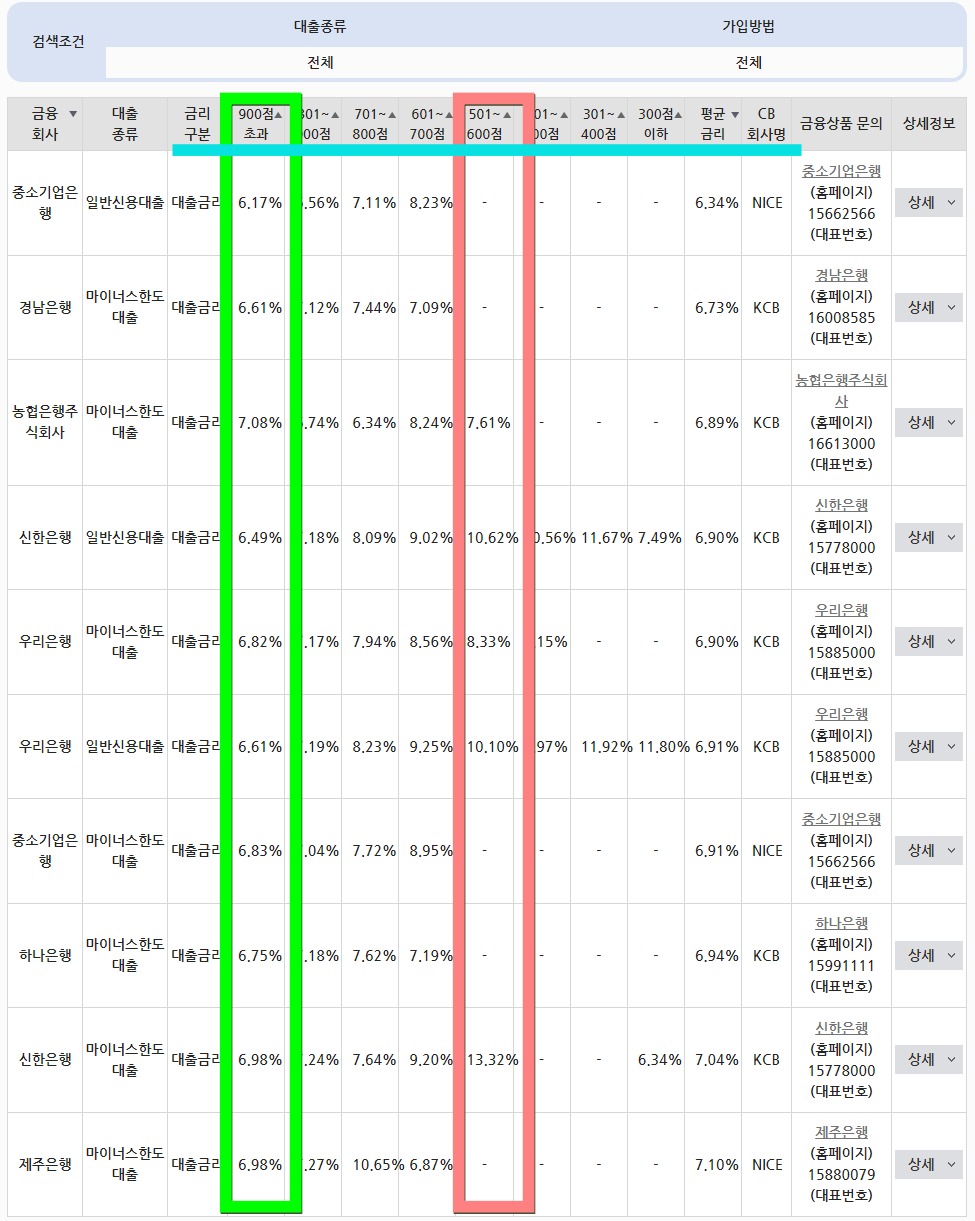 그것도 신용도 900점대 상위자들에게 속한 내용이지 실상 500점대의 경우 아예 대출조차 안 해주는 곳이 허다하다.