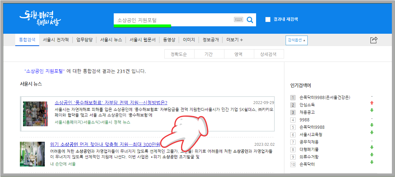 관심 있는 소상공인은 서울시 홈페이지 검색창에서 소상공인 지원포털을 검색하거나 소상공인 종합지원 포털로 들어가면 상세한 내용 확인 가능하다.