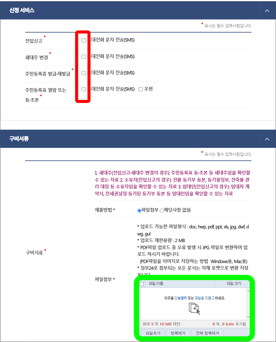 신청구분/ 신규, 혹은 해지도 가능하며 신청인의 주소와 휴대전화 번호를 기록하고 신청인의 주소지를 입력해 줄다음 아래와 같이