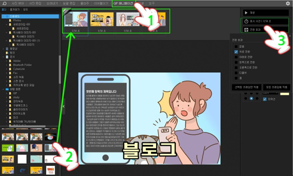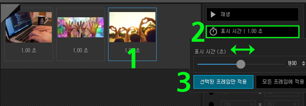 → (2) 타임 조절 → (3) 전환 효과 처리