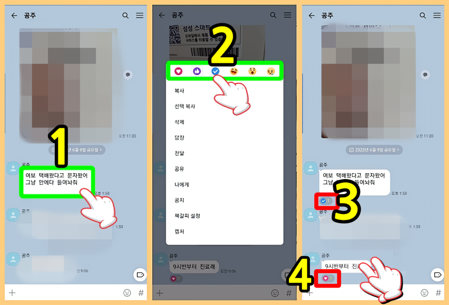 1. 이때 대화 말풍선을 길게 눌러보자