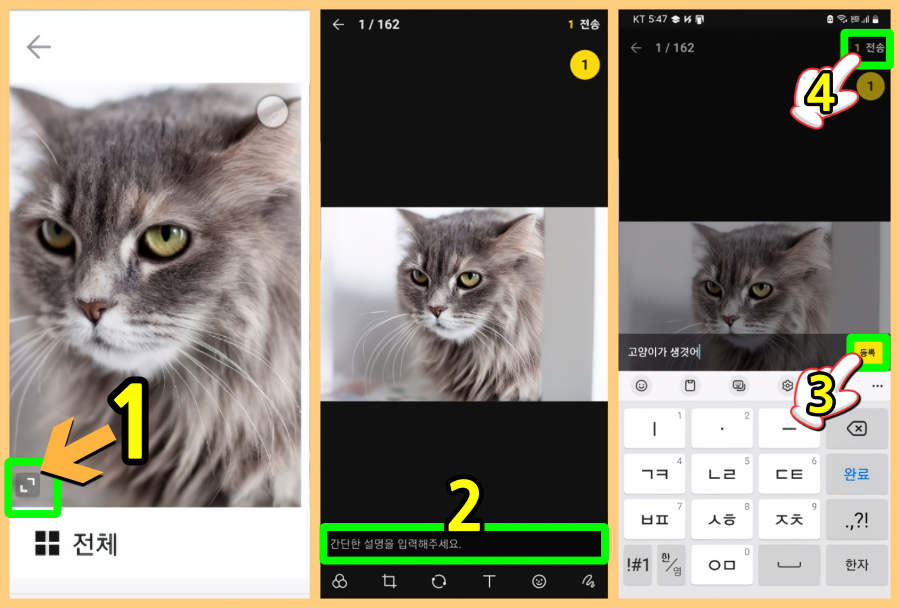 4. 전송 클릭 하면 끝, 이제 받아본 사람이 영상이나 사진을 클릭하면 하단에 설명이 붙어있는 것을 확인할 수 있게 된다.