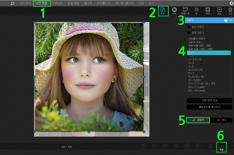 1:1 사진 자르는 방법