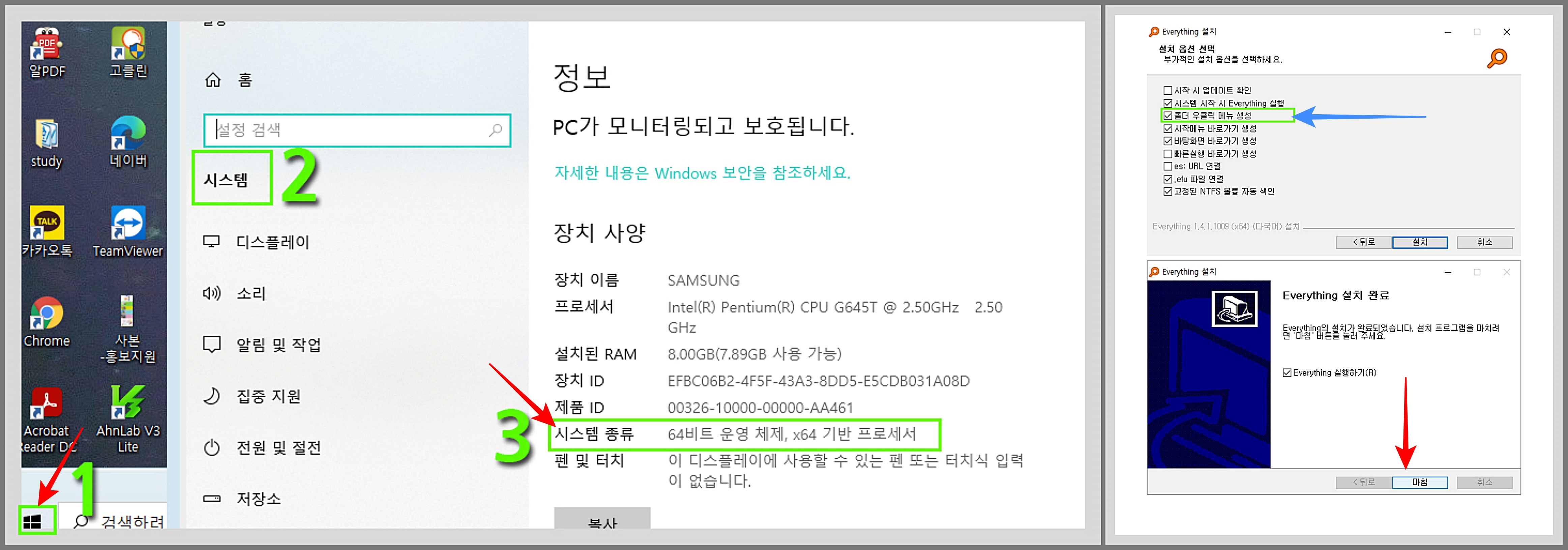 윈도즈 10을 쓰는 사람들은 대부분 64bit인데 그래도 한번 간단하게 확인해보는 게 좋겠죠. 컴퓨터 좌측 윈도즈 마크에서 오른쪽 마우스 클릭 → 시스템 클릭 (톱니바퀴 이미지 로딩됨) → 우측 시스템의 종류에서 내 pc 몇 bit인지 바로 확인 가능합니다. 그럼 다시 위의 그림과 같이 해당 파일을 클릭해 줍니다.