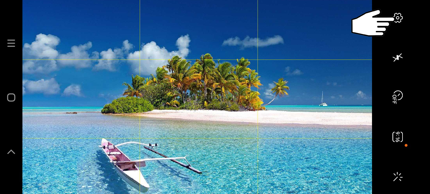 우선 카메라로 들어감 → 우측에 설정 클릭 → 카메라 설정에서 → 수직/수평 안내선 (우측 활성화시켜주기) 설정해 준후 다시 카메라로 오면 바둑판 모양의 선이 생기게 됩니다.