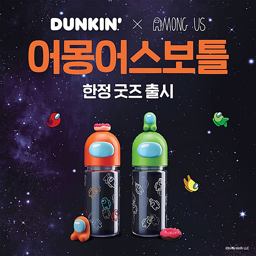 게임 브랜드와 식품의 협업은 2012년 3월 12일부터 던킨도너츠 (SPC그룹 계열사 비알코리아)는 인기 모바일 게임 어몽어스(Among Us)와 협업해 어몽어스 보틀을 매장에서 한정 수량으로 판매했었다.