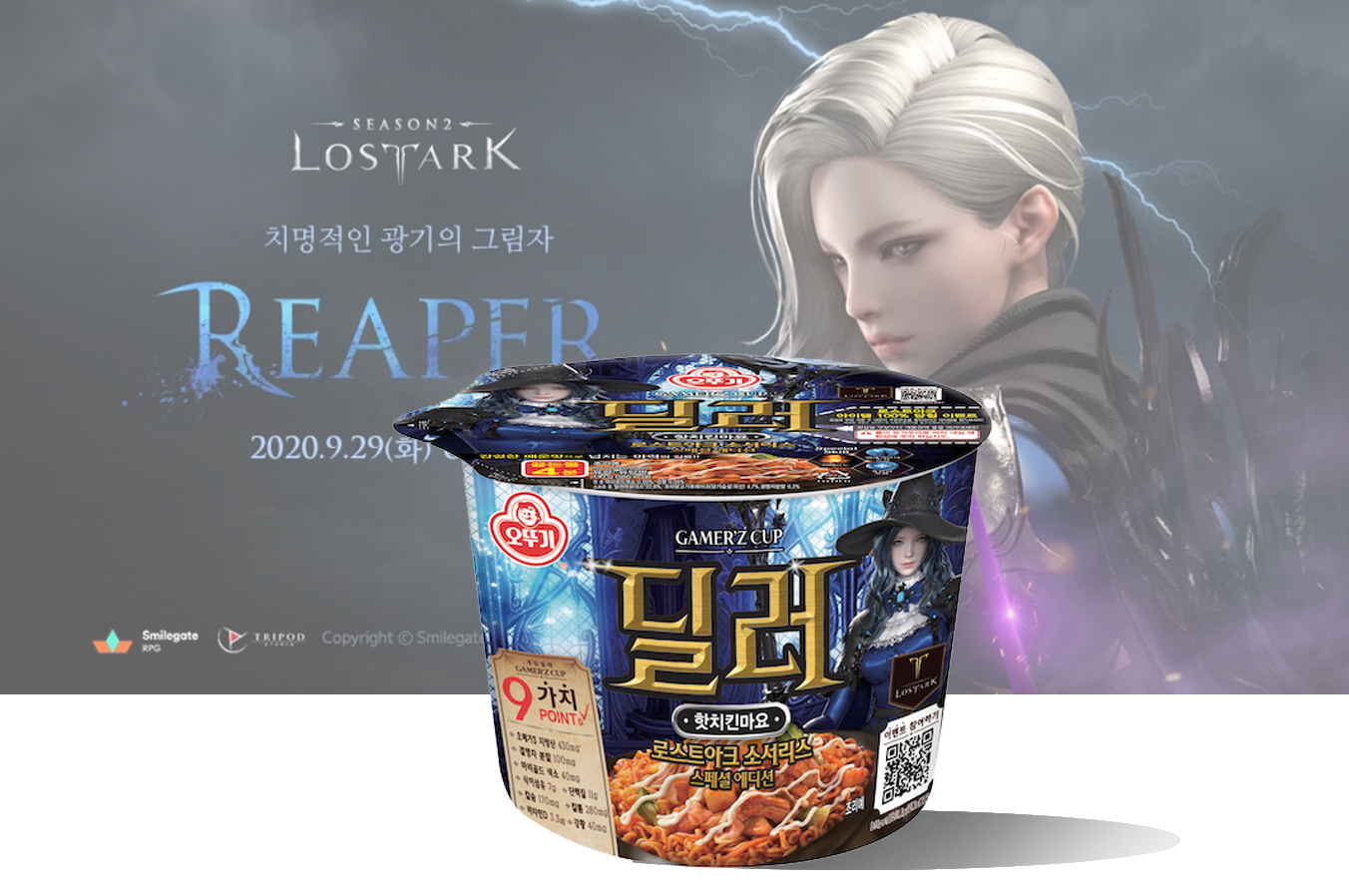 스마일게이트 RPG의 MMORPG 게임인 ‘로스트 아크’와 협업으로 오뚝이 식품은 29일부터 게이머즈 컵 딜러 핫치킨마요 용기면을 선보였다.
