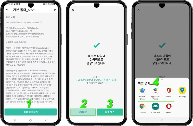 2. 공유하기와 3. 파일 열기가 나옵니다.