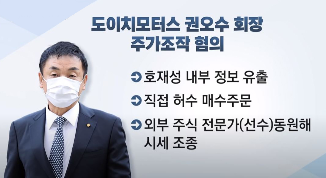 권 회장은 '선수'들을 동원해 주가를 관리하는 등 2009년 말부터 3년 동안 도이치모터스 주식 1599만여주(636억원 상당)를 주가조작 주도한 혐의이며 함께 참여한 조작 선수 3명도 이미 구속 수감 중인 상태이다.