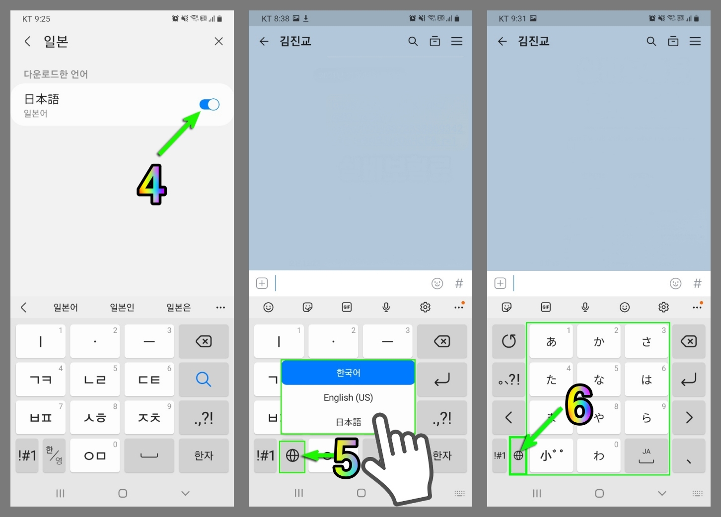 홈버튼을 눌러 다시 빠져 나가거나 한글자판을 띄워보면 이전에 없었던 지구표시가 보이게 된다.