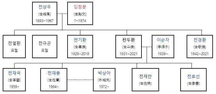전두환은 1831년 경남합천에서 태어났다, 1958년 1월 24일 이순자(82)와 결혼
