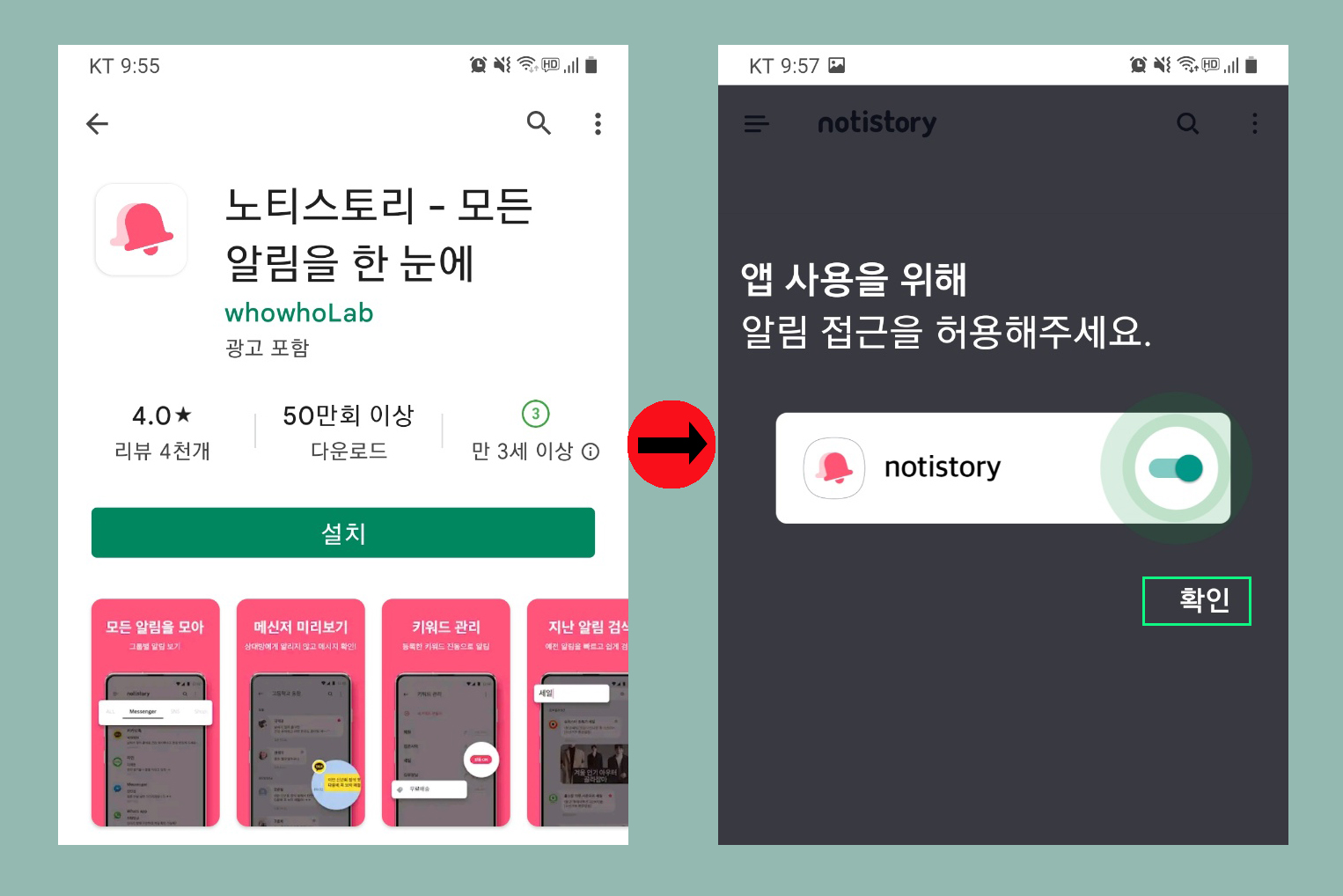 노티 스토리앱을 깔아준다. 노티스토리 앱은 상대방이 보낸 문자메시지를 실시간으로 저장하는 앱이다,