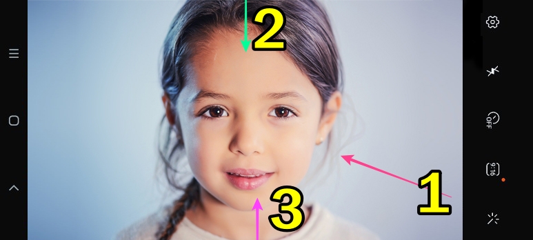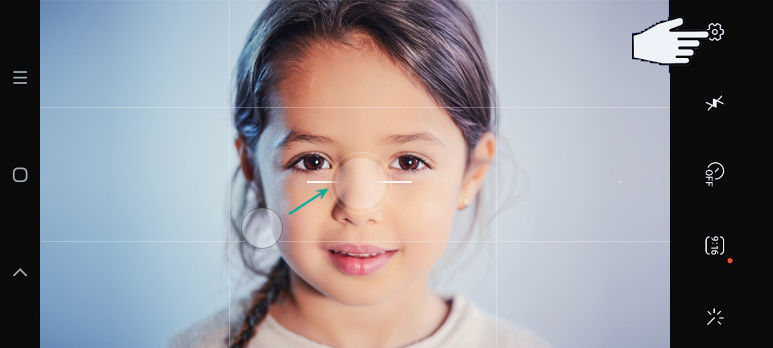 밖에 있는 원을 중앙 원에 맞게 카메라를 이동해 주어 맞게 되면 중앙의 원이 노란색으로 변한다. 자동 설정이 잘 맞게 되면 자동으로 정확한 촬영 타이밍을 알려준다.