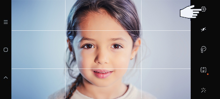 핸드폰 카메라로 들어가 좌측 상단 톱니바퀴를 클릭 → 수직 수평 안내선을 활성화시켜준다. 그러면 카메라 화면을 보면 하얀 선이 나타나게 된다.
