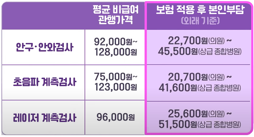 또한 녹내장이나 백내장 등 수술 전에 시행하는 계측검사도 건강보험을 1회 적용이 됩니다.