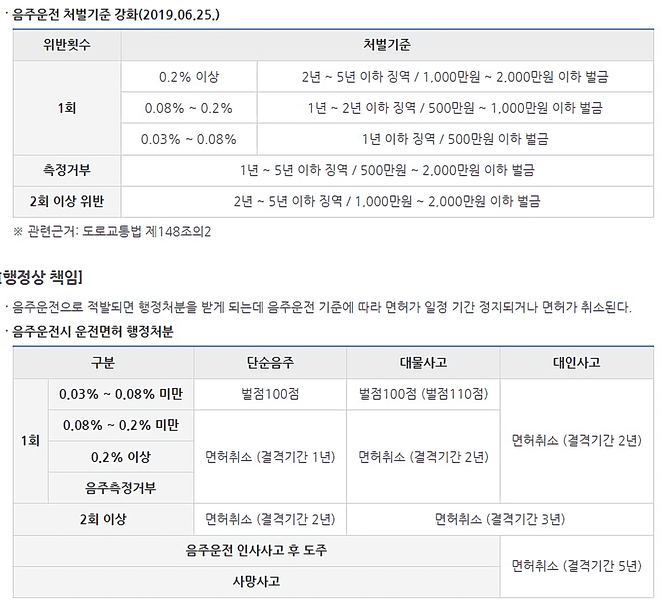 우리나라도 일본의 운전법규 일부를 유용하긴 했으나 형벌이 그렇게 크지는 않았다.