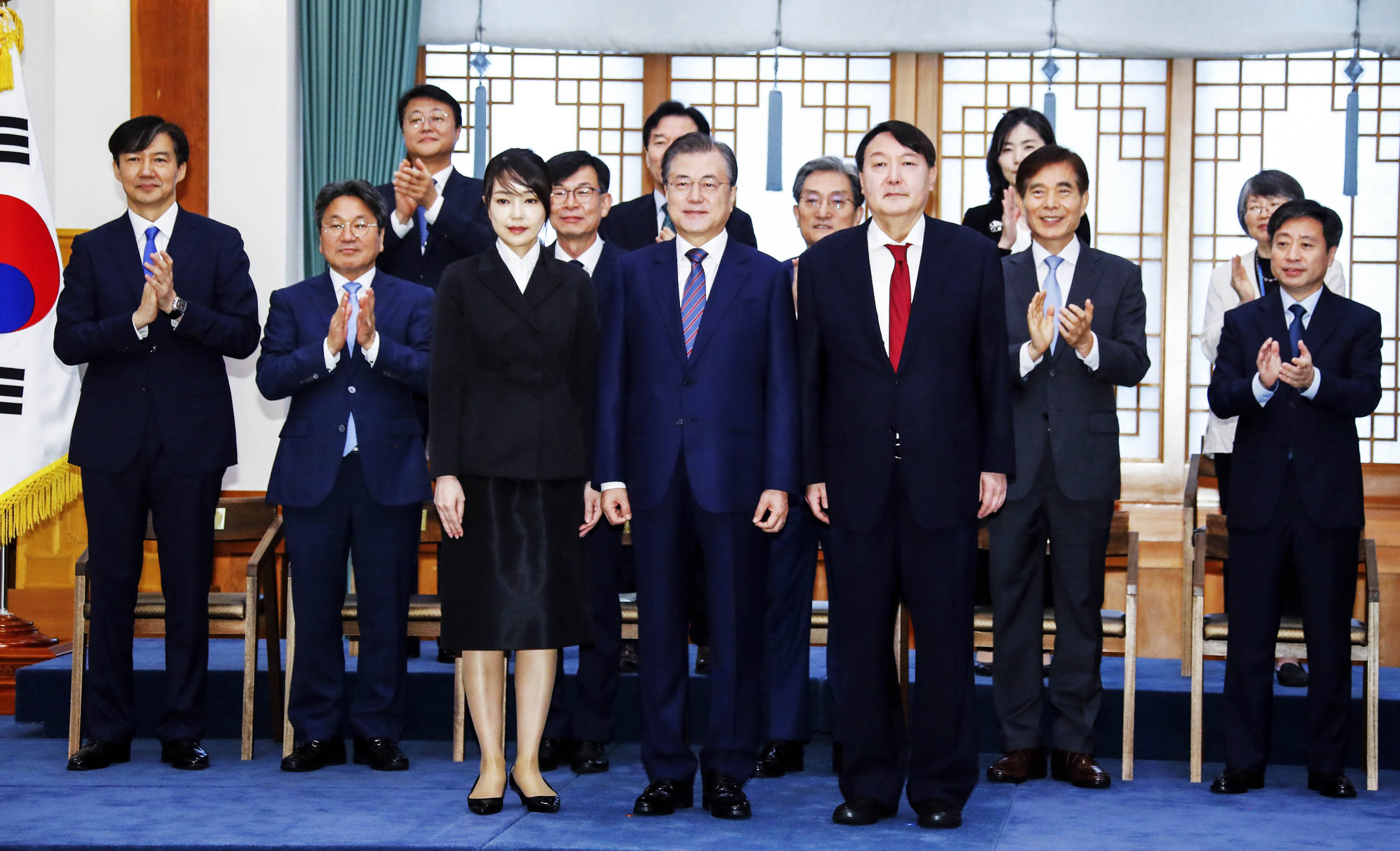 2019년 7월 25일 윤석열 신임 검찰총장 임명장 수여식 자리에서 배우자인 김건희 씨가 함께 했었다.