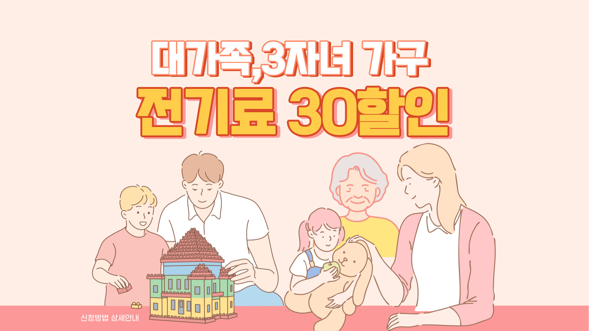 심각한 저출산으로 고민이 커진 정부는 출산 장려 정책으로 다자녀 대가족에게 전기요금 할인은 2017년부터 한국 전력 공사에서 시행해 왔지만 의외로 알고있는 사람이 많지 않다.