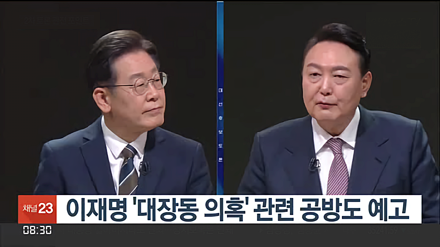 11일 오후 8시 6개 방송사가 공동으로 대선후보 2차 TV토론 135분간 공방을 벌였다. 지지도 1,2위인 두 대선후보는 초반부터 핵심적인 문제로 각을 세우며 신경전을 벌였다.