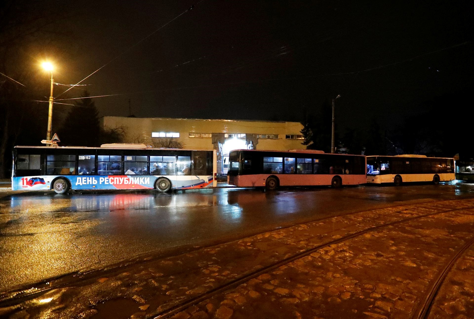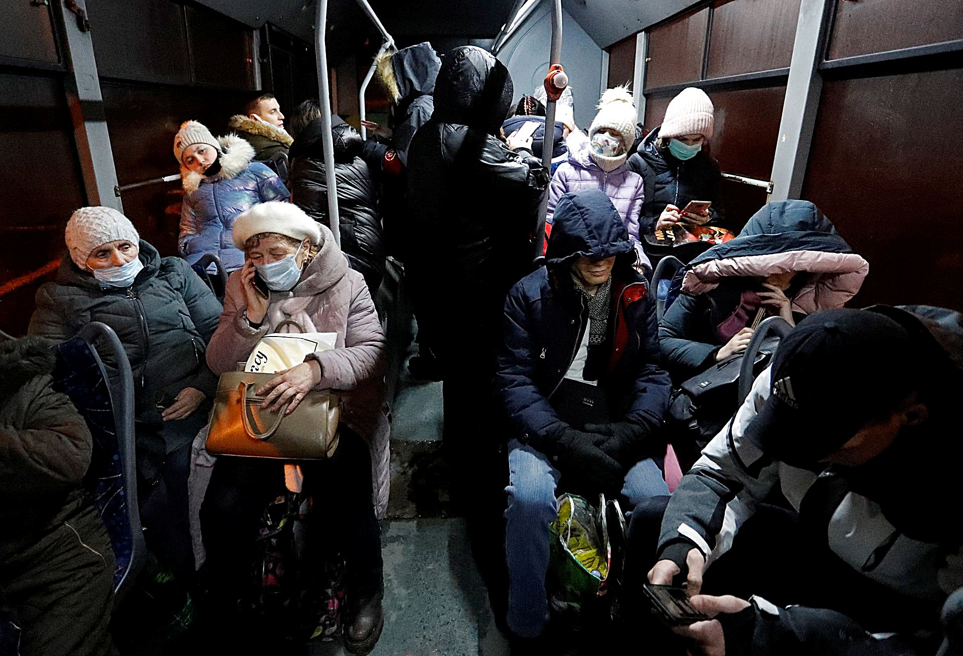 깜짝 발표가 있은 지 몇 시간 만에 가족들은 러시아행 버스를 타기 위해 도네츠크의 대피소에 모이기 시작했다. 한 여자는 울고 있는 아이를 달래며 자녀를 부둥켜 안고 있었다.