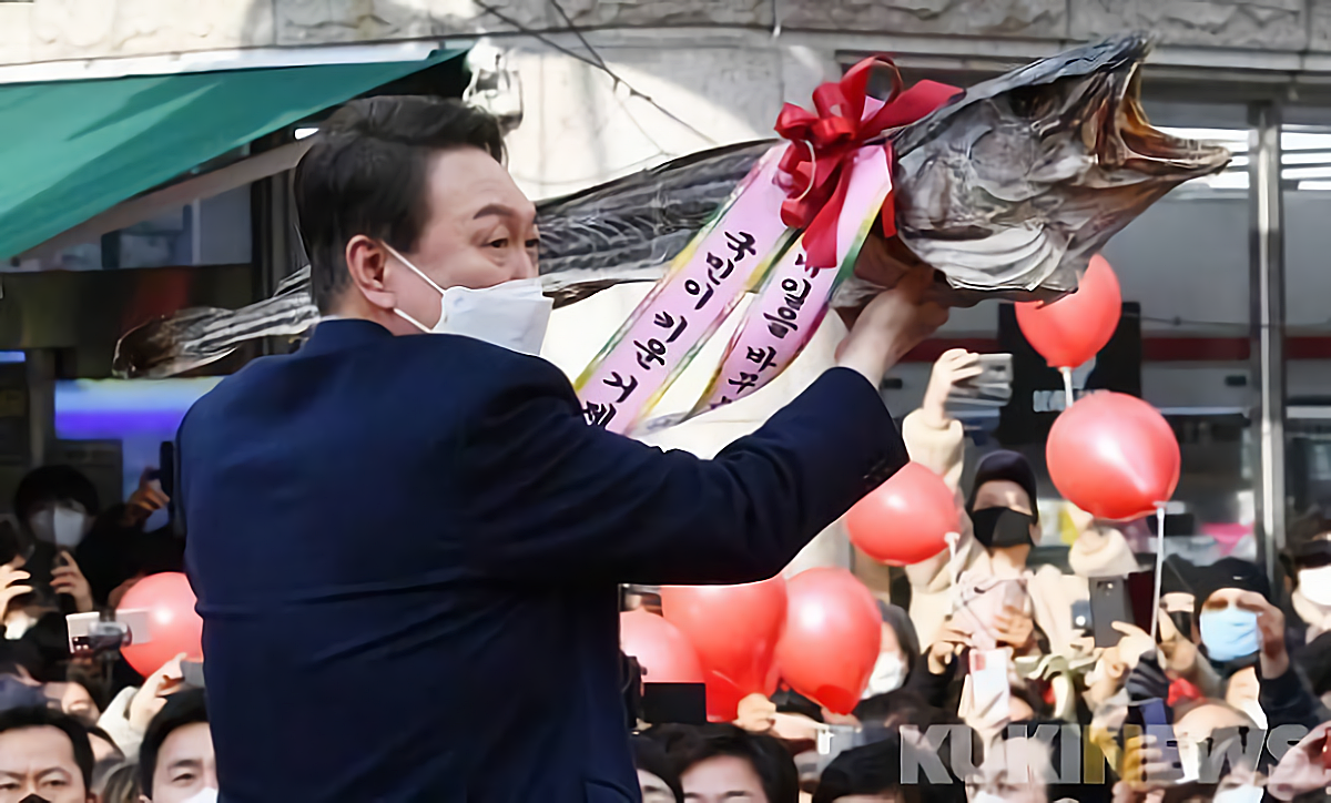 19일 거제에서 선거유세 도중에 윤석열 후보는 초대형 대구를 들어 올리고 북을 치며 마치 액막이 굿판을 벌이는 퍼포먼스가 방송에 그대로 보도되었으며 네티즌들의 비난이 쏟아졌다.