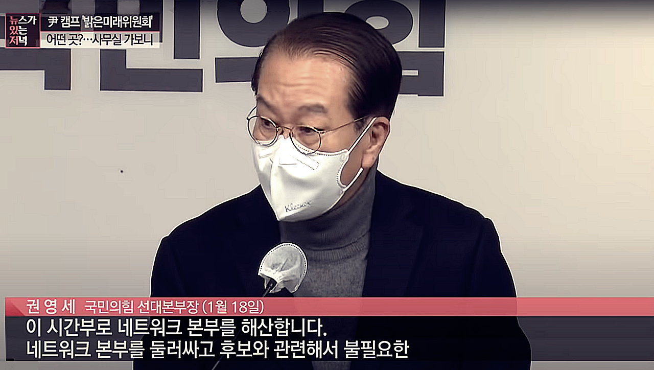 건진 법사 무속인이 국민의힘 윤석열 선거캠프에서 선거의 모든 것을 조정을 하고 있다는 소식이 언론을 통해 전해지자 지난 1월 18일 무속인 논란으로 네트워크 본부를 해산한다고 권영세 국힘 선대본부장이 공식으로 발표했다.