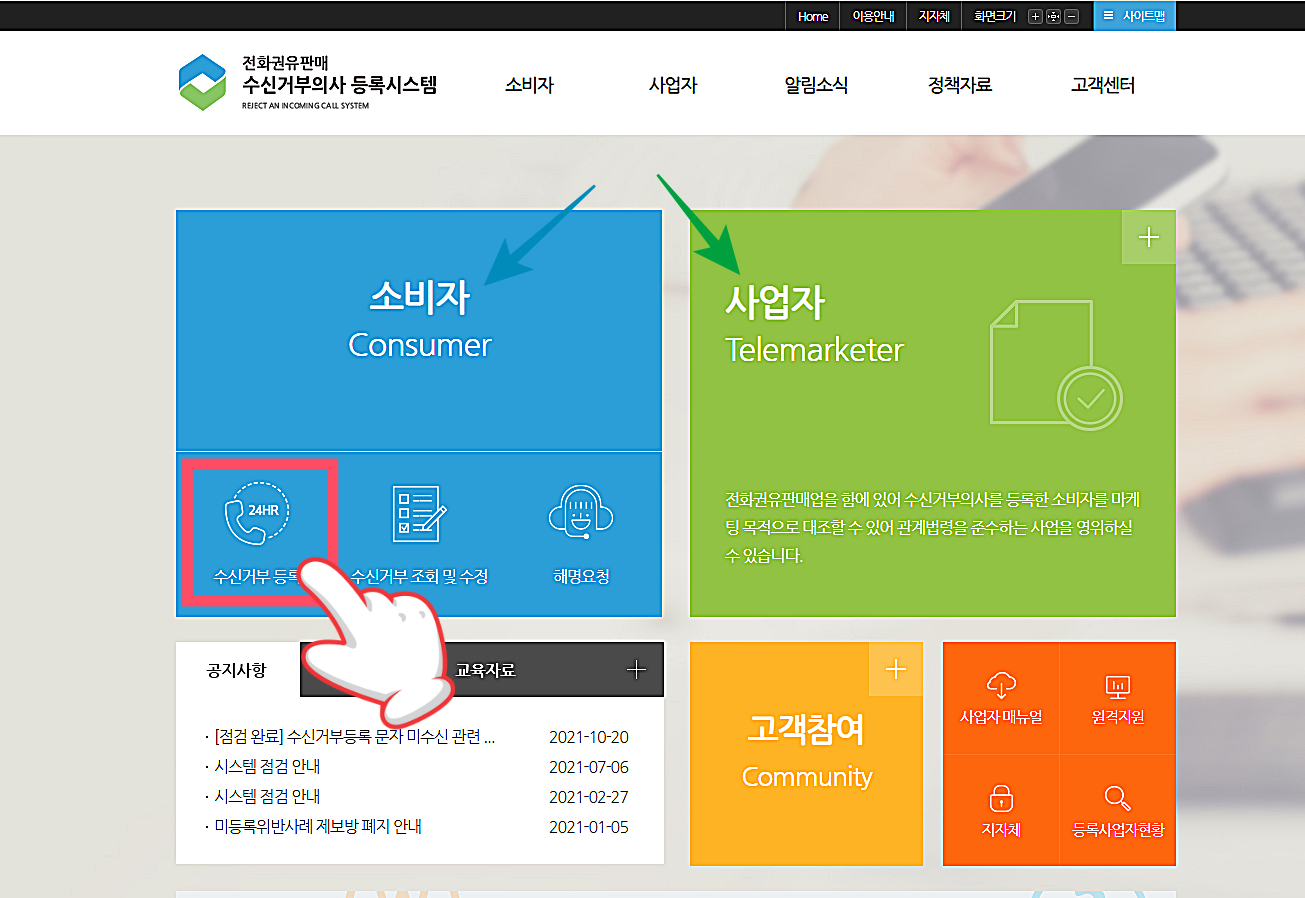 전화권유 판매 수신거부의사 등록시스템을 1분만 투자해서 등록해보자.