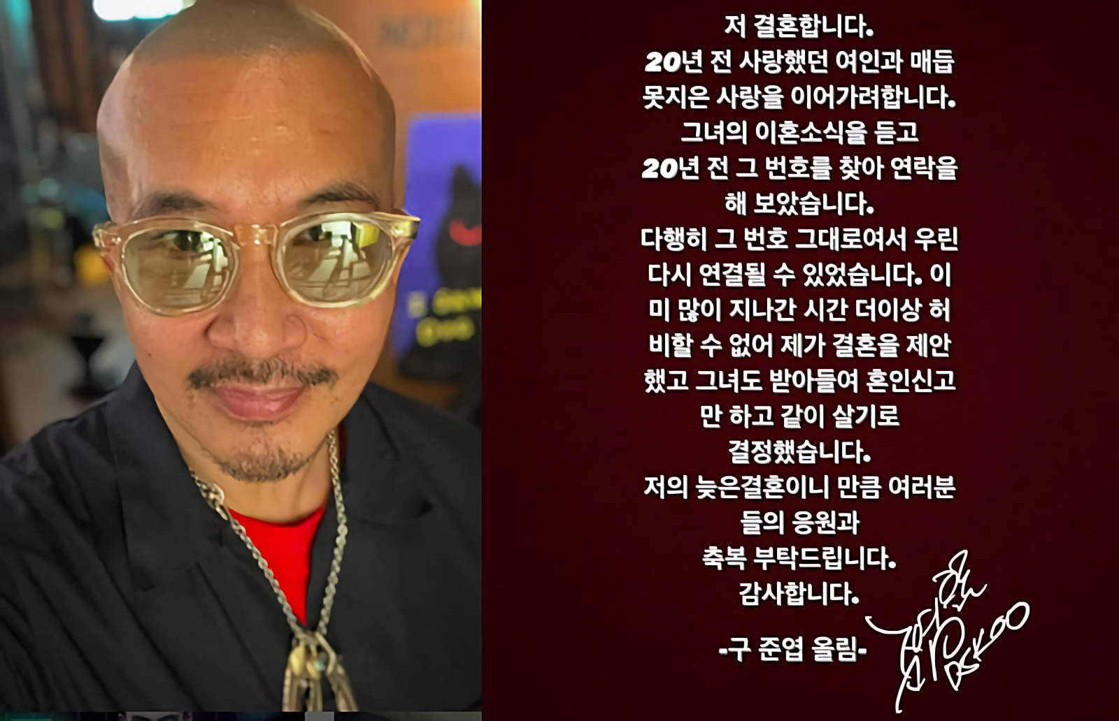 "늦은 결혼이니만큼 여러분의 응원과 축복 부탁드린다"라고 했다.