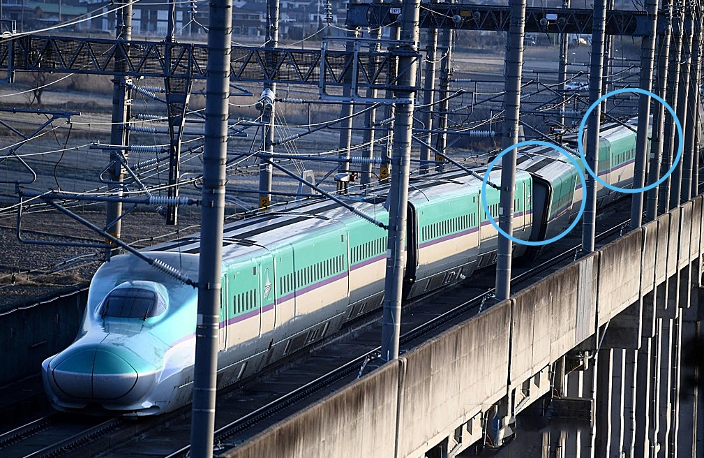 일본 미야기현 센다이 남동쪽 96km 해역에서 일어난 지진으로 신칸센 열차 전선 설비가 기울어지며 열차가 탈선했다.
