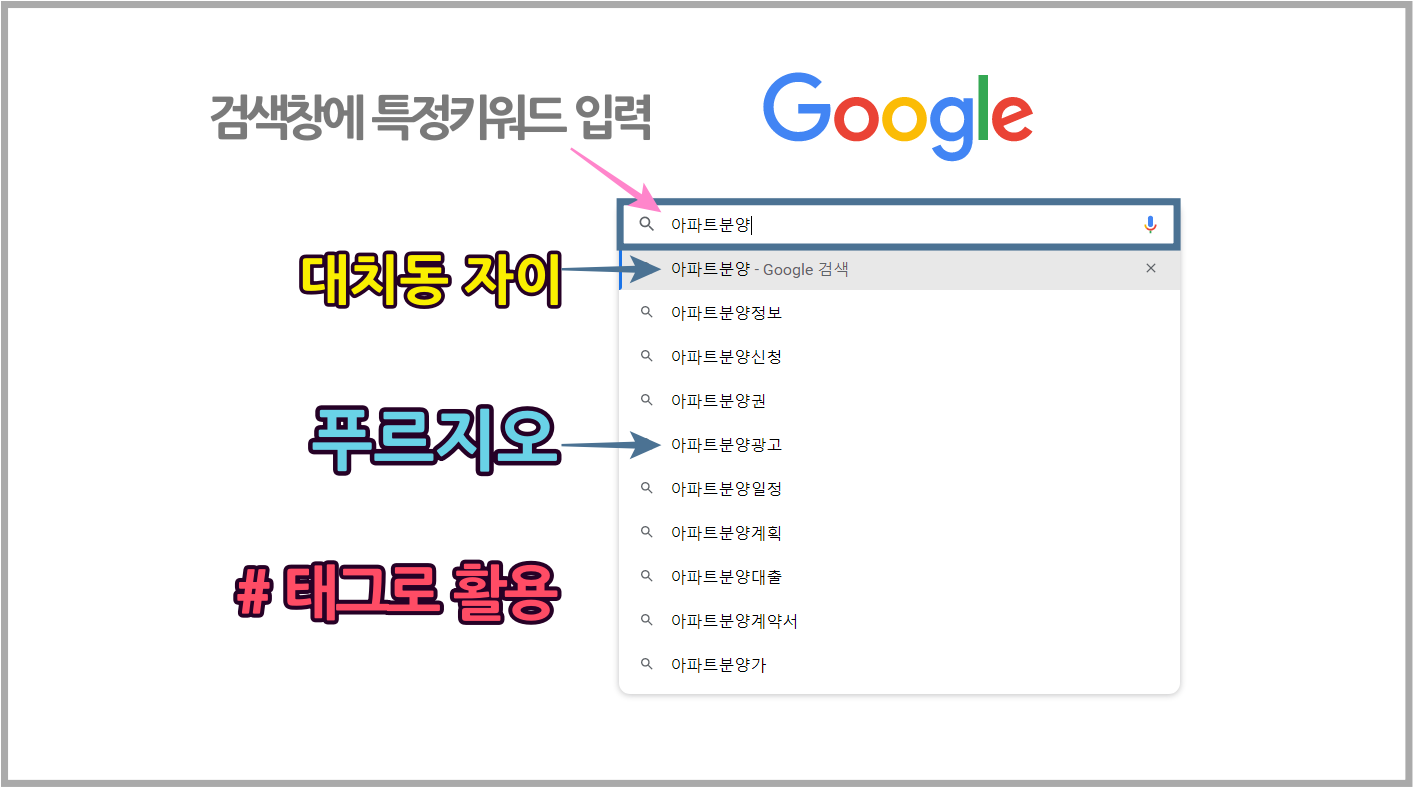 저것은 사람들이 검색을 할 때 많이 사용하는 키워드를 알고리즘이 미리 검색자가 찾기 편하도록 만들어 놓은 것이니 초보자인 경우는 검색에서 큰 도움을 받을 수 있다.