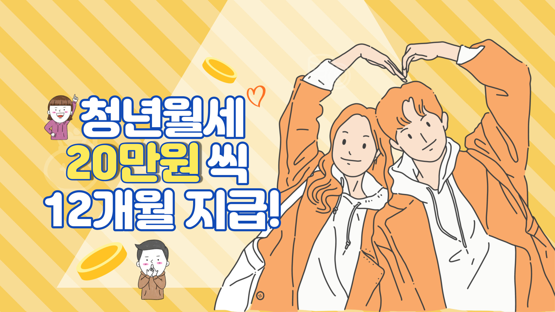 부모에게서 따로 독립해 거주하고 있는 무주택 청년에게 월 최대 20만 원씩 1년간 지원하며 중위소득 60% 이하의 청년들에게 월 8월부터 시행한다.