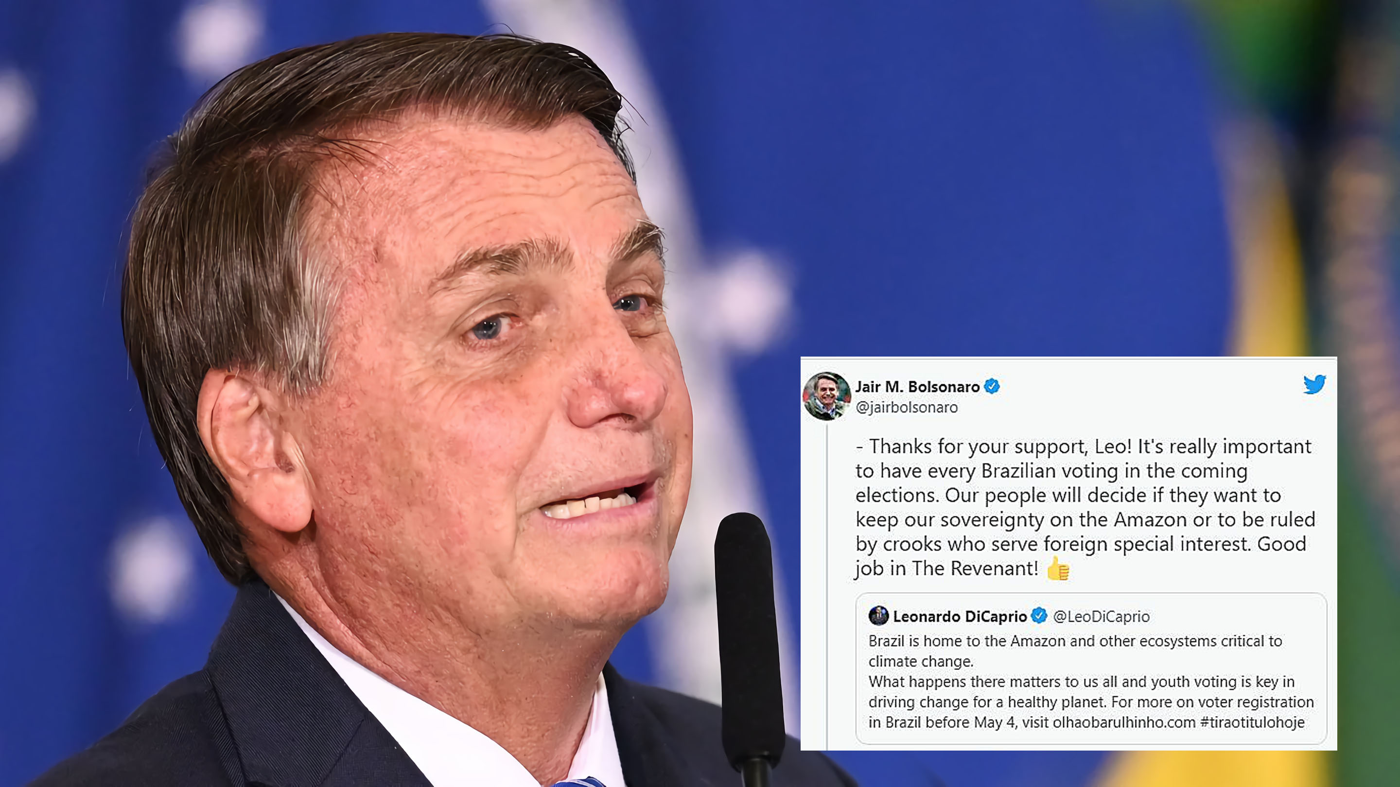 환경운동가들에게 평소 비판을 받아왔던 자이르 보우소나루(Jair Bolsonaro) 브라질 대통령은 디카프리오의 투표권유에 화를 내며 반박했다.