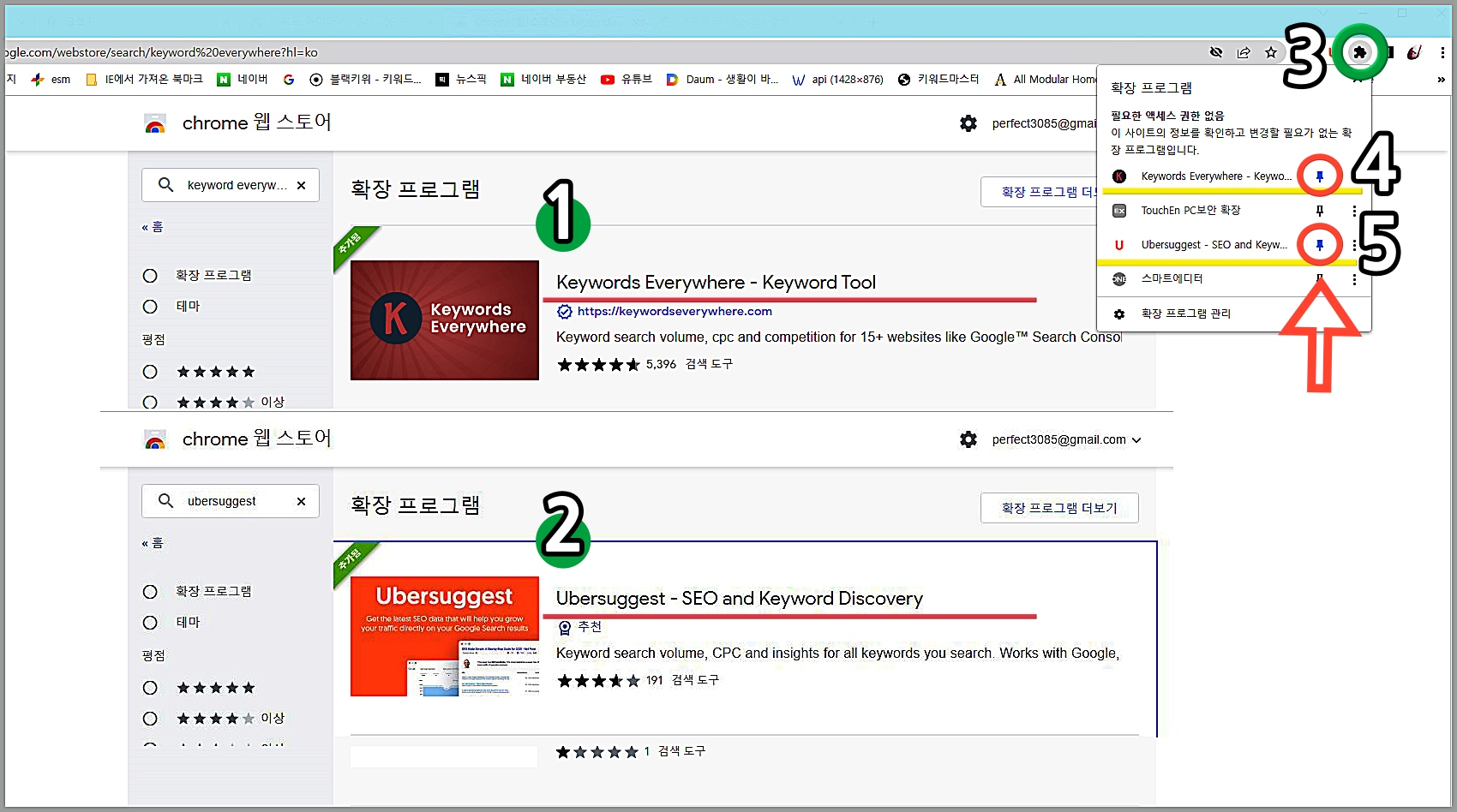 크롬에서 chrome웹스토어 검색 →ubersuggest-SEO and keyword 설치 후 →우측 상단 확장 프로그램에서 →