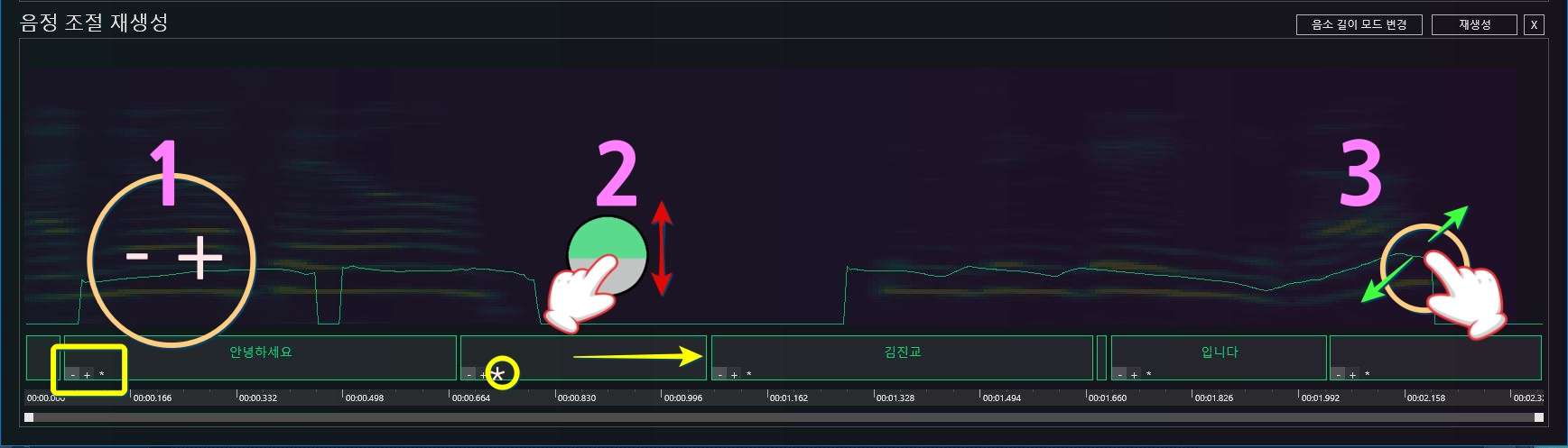 3번과 같이 음성을 직접 마우스로 높이를 조절해 주어 음성을 높이거나 낮출 수도 있다.