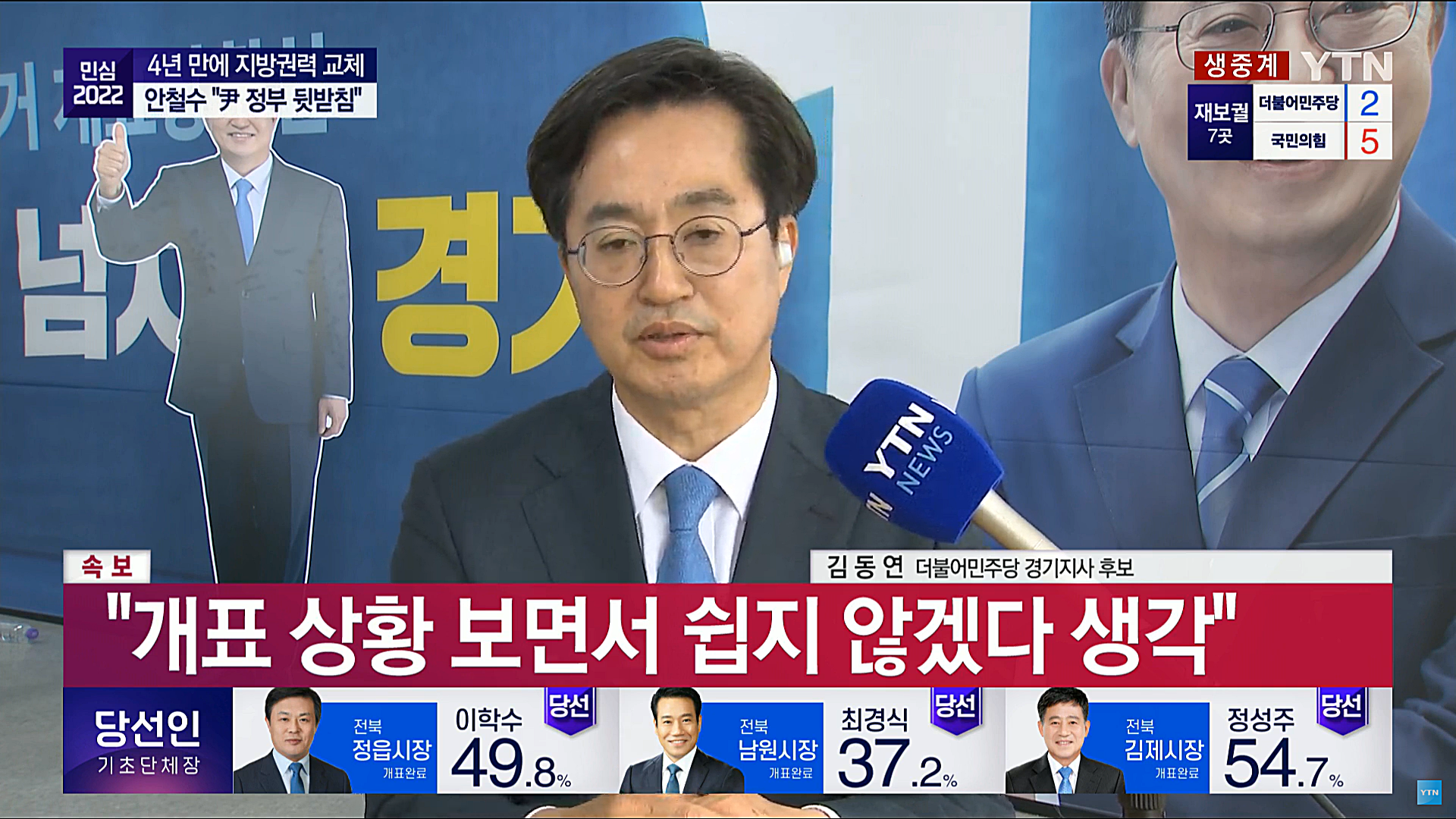관심이 뜨거웠던 최대 격전지 경기지사 선거에서 엎치락뒤치락 치열한 접전 끝에 결국 더불어민주당 김동연 후보가 당선이 확정되었다.