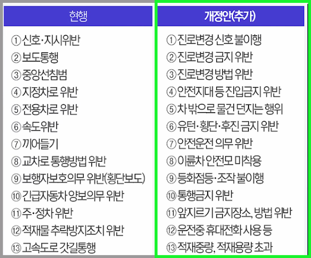 교통법규 13개 항목 새롭게 추가