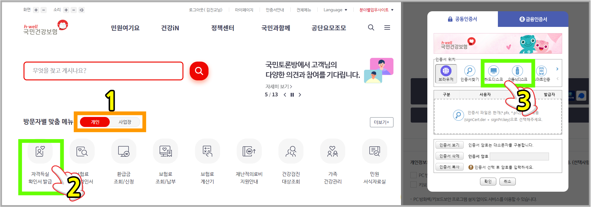 건강보험 자격득실 확인서 발급방법 (사진: 국민건강보험 홈페이지)