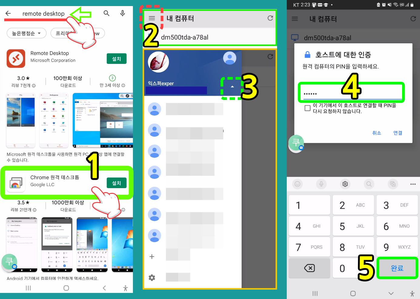 휴대폰 구글 플레이스토어에서 remote desktop 검색 → 1. Chrome 원격 데스크톱 설치