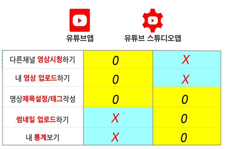 유튜브 앱과 유튜브 스튜디오 앱의 차이 ​