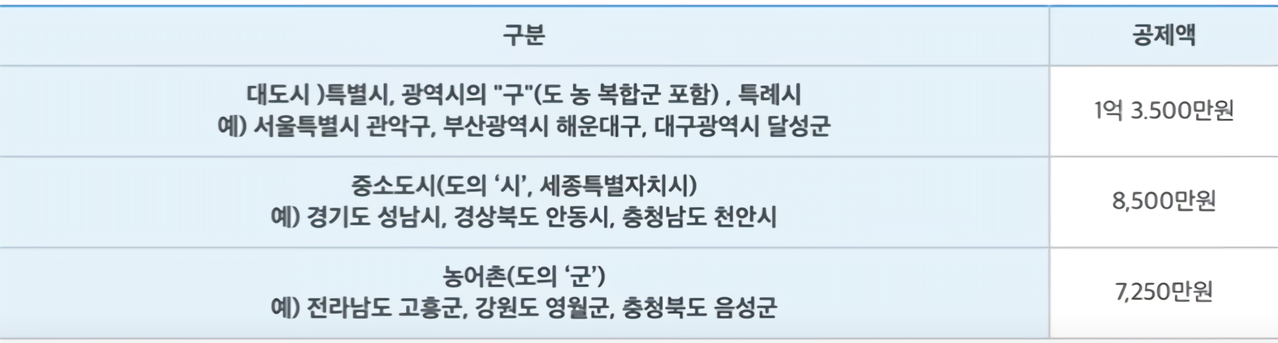 따라서 단독 가구의 경우 대도시는 최대 6억 7500만 원, 중소 도시는 6억 2500만 원, 농어촌은 6억 1250만 원이다.