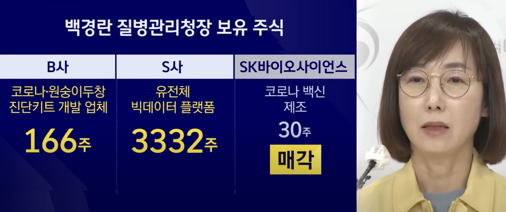 현재 백 청장은 "질병 청과 거래 관계가 있는 SK바이오사이언스 주식 등은 이미 처분한 상태"라고 밝혔으며