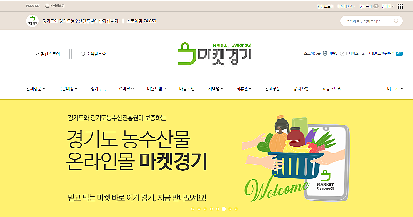 네이버 쇼핑 (스마트스토어)과 협약으로 판매하고 있는 마켓 경기는 지금 회원 가입만으로 절반에 가까운 금액으로 쌀부터 김치 꿀 등 농산물 구입이 가능하다.