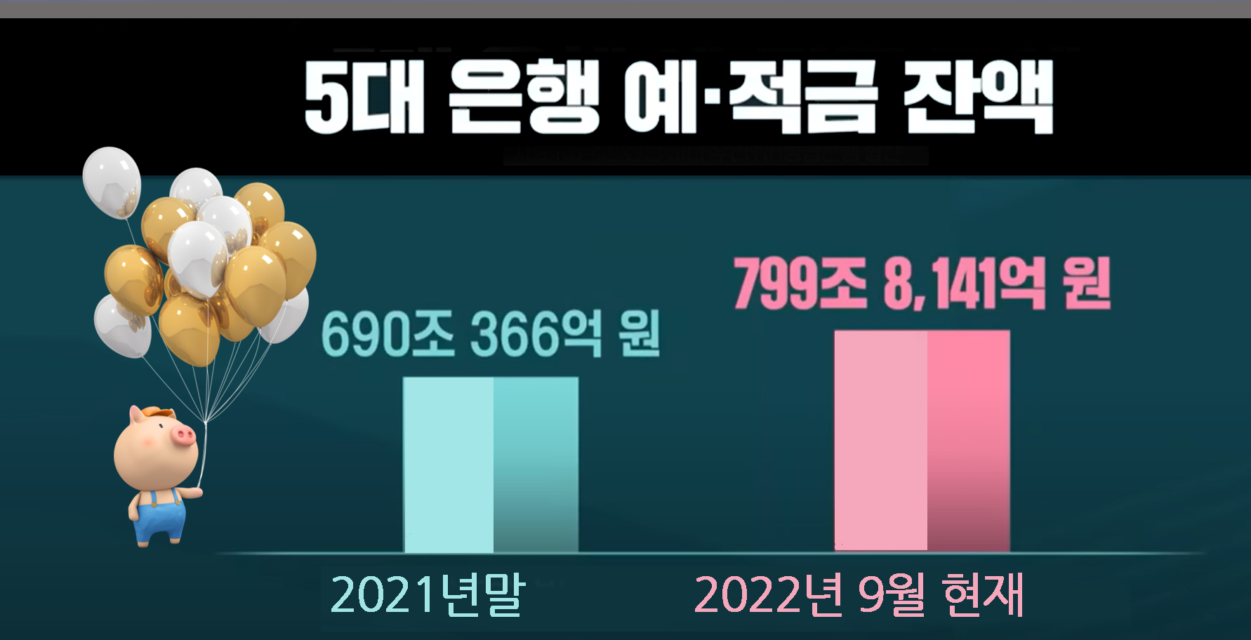 국민, 신한, 하나, 우리, NH농협 등 5대 시중은행의 예금과 적금 잔액을 합산해 본 결과 지난 연말 690조에서 9월 현재 799조로 100조 원이 넘게 몰렸다.