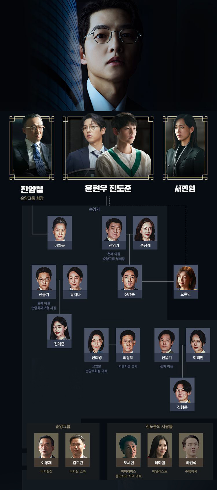 드라마 초기에 등장하는 순양그룹의 기획조정본부 미래 자산관리팀장 원현우(송중기 분)는 40대 중반으로 초반에 사살된다.